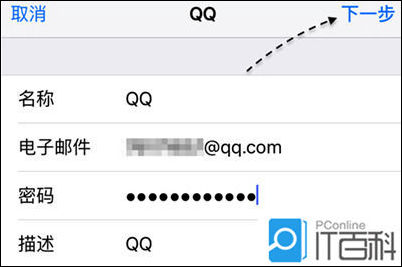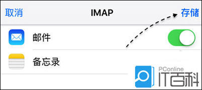 6、当 iPhone 验证成功了输入的 QQ 邮箱帐户与密码以后,再点击【存储】按钮就可以了。