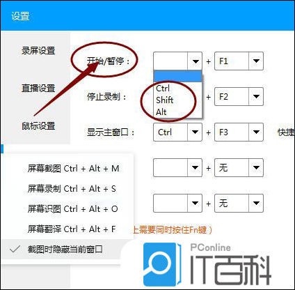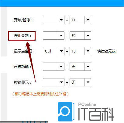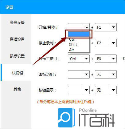 在右边选择从 F1到F10 中的任何一个键,这样就组合成一个 开始、暂停快捷键。