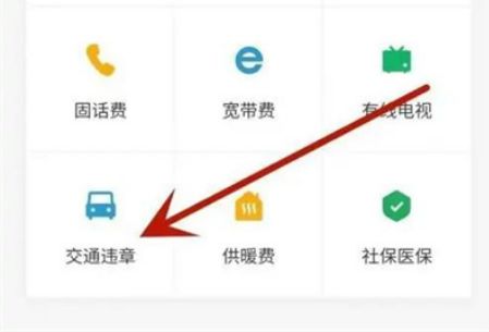 2.进入生活缴费这一页后,在下方的选项里会看到有“交通违章”的选项,在上面点击选择。