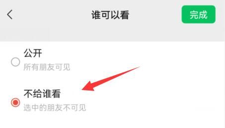 只要在发布的时候选择“ 不给谁看 ”就行了。