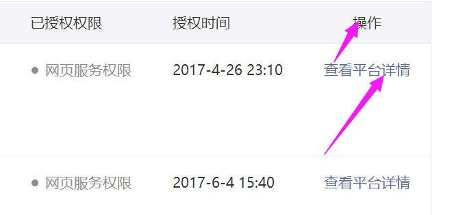 5、然后选择你要取消的平台,操作,点击“查看平台详情”。