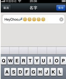 当然最简单的方法还是直接在修改名字那输入表情,比如我打字“笑脸”,拼音xiaolian,然后在输入法的后面就能看到表情了,点击就能在名字里显示,如此类推,“睡觉”“难过”等都可以输入进去图标了。