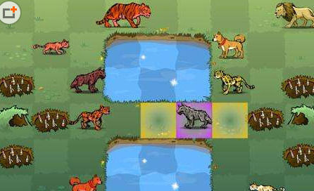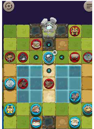 进入游戏之后,你的棋子是蓝色,而对手的棋子是红色。(划重点)棋子强弱顺序:大象老鼠足球老虎小狗豺狼老虎大象,遵循食物链的规则,大象基本上完虐其他动物,但是它也有自己的天敌克星:小老鼠。