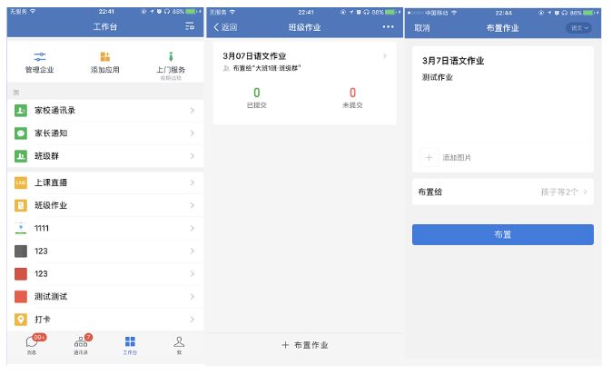 3、手机端/电脑端—工作台—班级作业—布置作业。