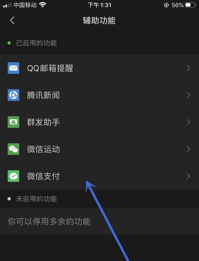 3、依次点击设置-->通用-->辅助功能-->微信支付