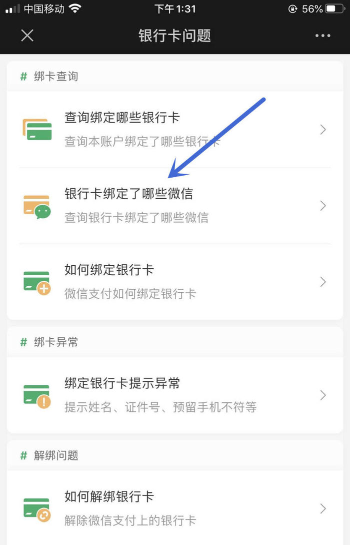 6、点击银行卡绑定了哪些微信 然后按照提示查询