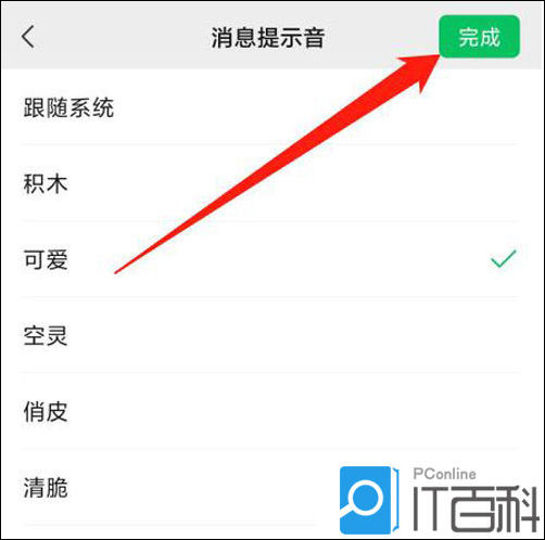 6、然后就可以在消息提示音中使用自己喜欢的提示音,点击完成即可。