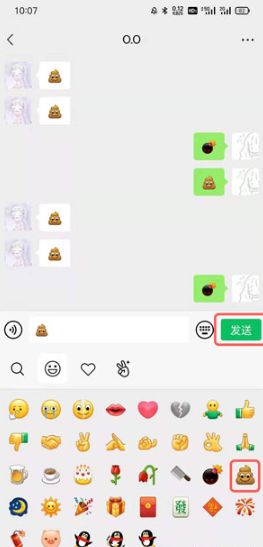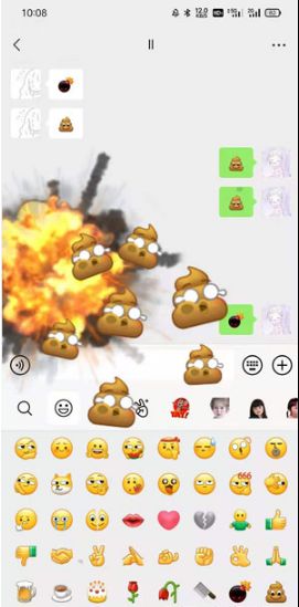 5、收到炸弹表情之后就可以出现满屏大便“炸屎”的满屏特效表情了。