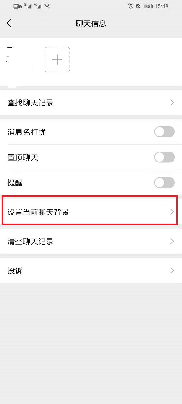 2.在聊天信息界面中,点击下方的【设置当前聊天背景】;
