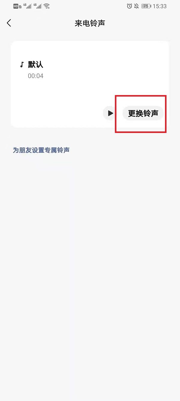 4、在来电铃声设置功能界面中,点击左下方的【为朋友设置专属铃声】即可进入到选择好友界面,选择好好友后即可选择铃声。
