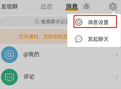 1、打开微博,点击消息,点击右上角设置图标。
