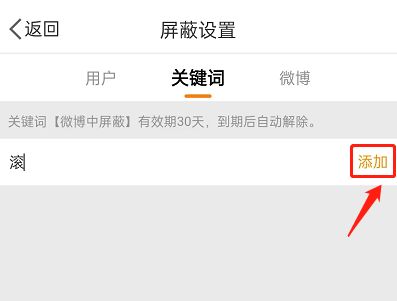 5、输入屏蔽词,点击添加。