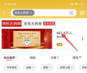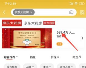2、点击上方的搜索结果,进入京东大药房店铺;