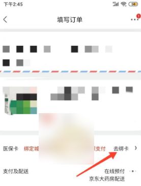 5、在“填写订单”页面点击医保卡右侧的“去绑卡”;