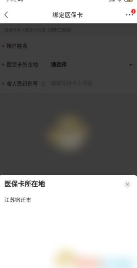 6、选择医保卡所在地和持卡人号码后勾选“医保卡使用说明”并点击下方“绑卡并使用”即可绑定医保卡。(医保卡绑定仅限江苏省宿迁市)