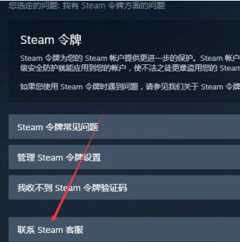 之后再在【Steam令牌】页面点击【联系Steam客服】按键。