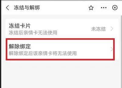 3、点击已经绑定的亲情卡,在页面的最下方可以找到【冻结与解绑】选项。