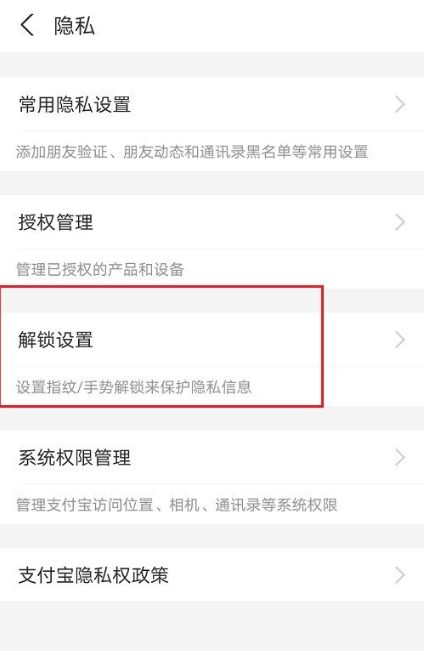 第三步:进去支付宝隐私界面之后,然后点击解锁设置