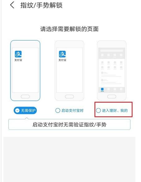 第四步:进去解锁设置之后,选择进入理财、我的界面需要解锁