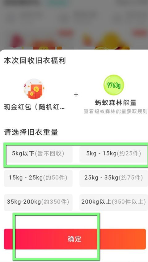 5、在里面选择衣服的重量点击确定。