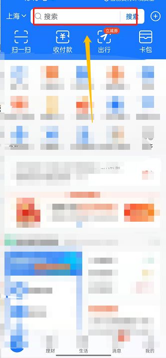 1、选择支付宝app,在首页点击 搜索 框。