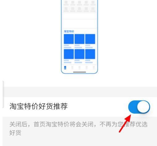 进入淘宝特价页面后,关闭 淘宝特价好货推荐 ;