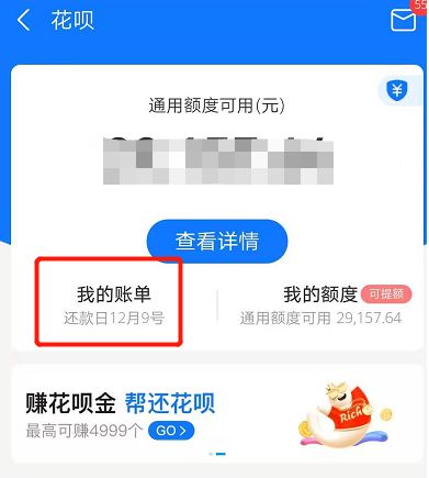 5、如果到了还款日,直接点击还款,如果还未到还款日,具体的分期金额在下月账单中查看,每个月的还款金额只是分期到每个月的金额,并非全部花呗金额。