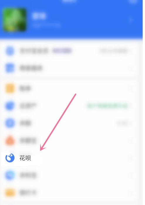 3、找到花呗选项并点击