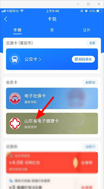 3、点击 需要删除的会员卡。