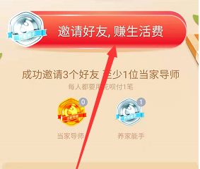 2.点击“邀请好友,赚生活费”。