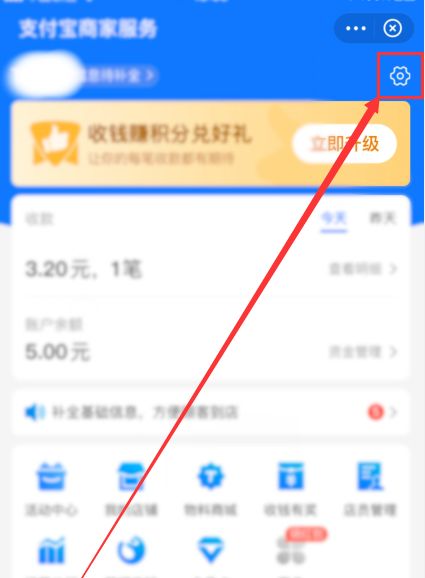 4、在【支付宝商家服务】界面点击右上角的设置按钮
