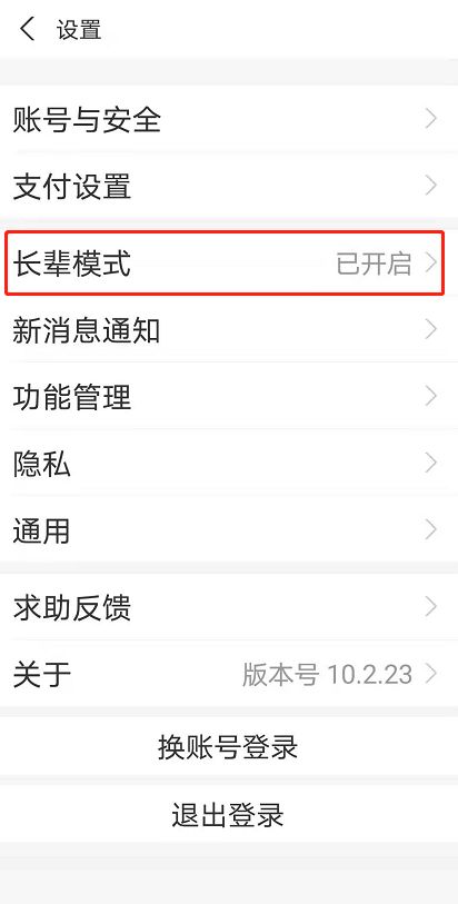 3、在设置中的支付设置和新消息通知之间就可以看到“长辈模式”,选择进入。