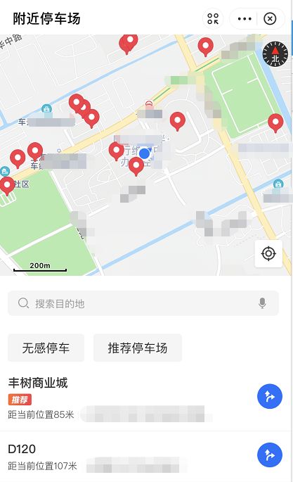 4.页面上还会显示距离当前位置多少米,选择停车场进行 导航 即可