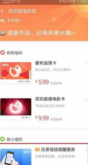 3.然后点击短信提醒服务,进去花呗短信提醒服务之后,进行支付开启就完成了。