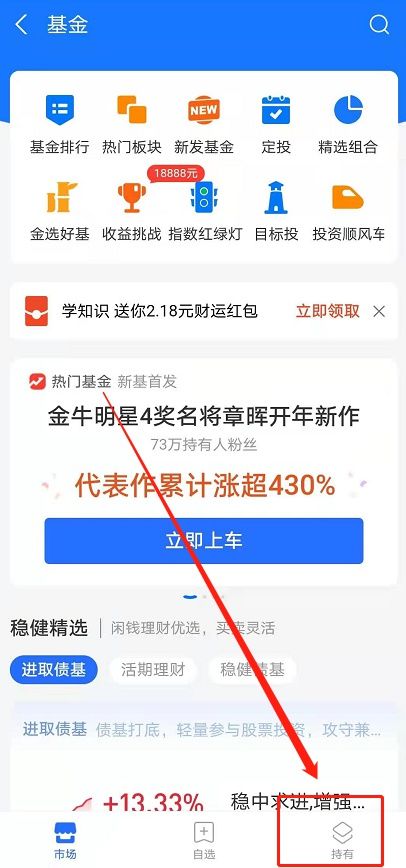 3、选择下方的“持有”进入,可以看到我们购买的所有基金状况。
