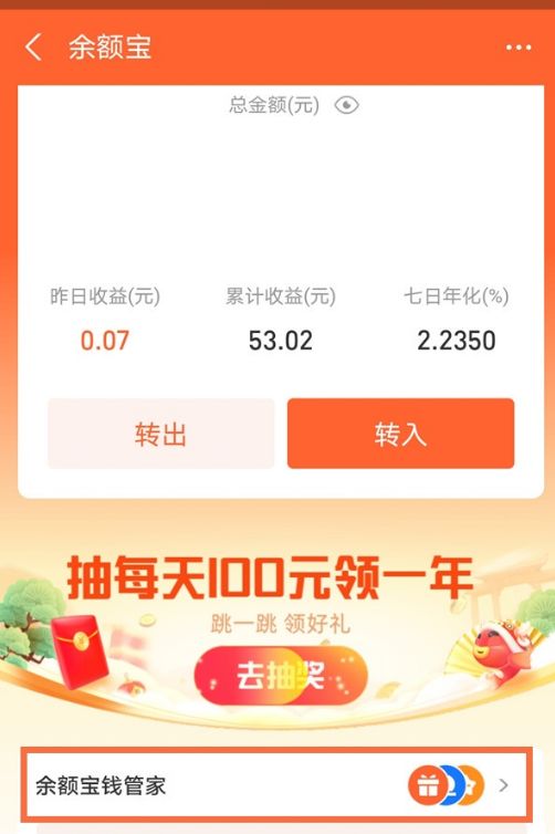 2、点击【余额宝钱管家】。