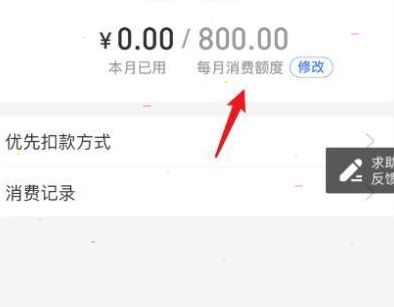 3、在每月消费额度附件有一个 修改 选项,点击后即可修改额度