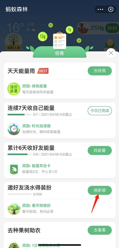 3.需要邀请好友浇水,得到500g能量后就可以获得新装扮了