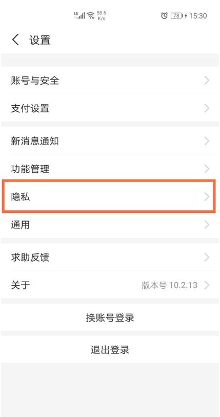 2、选择【隐私】。