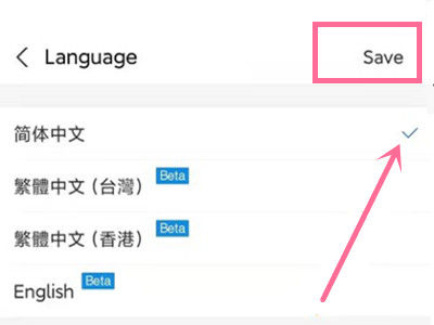 3、从语言设置的界面中选择简体中文,最后点击右上方的Save就可以了。