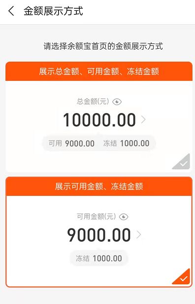 4、选择第二种展示方式,这样主体就仅展示可用余额了,冻结金额是下方小字显示。