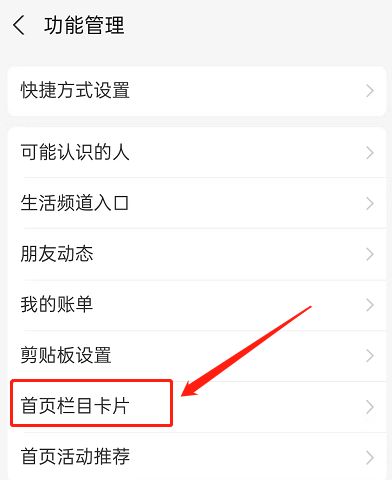 5、移除好卡片后,我们返回到功能管理页面,点击进入首页活动推荐。