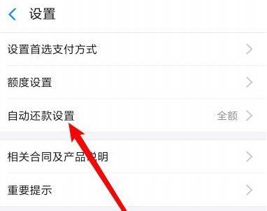 5、这时就会打开花呗设置页面,点击自动还款设置的菜单。