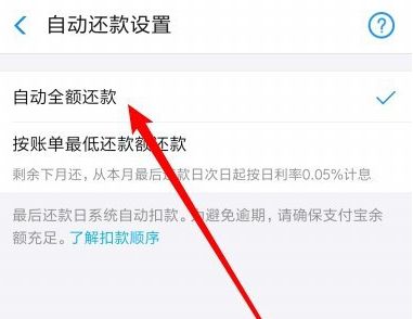 6、然后在打开的页面选择自动全额还款的选项就可以了。