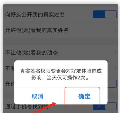 5、向好友公开我的真实姓名后面的开关是关闭状态,点击开启。