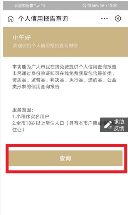 4、进入个人信用报告查询,点击“查询”确定,如图红色文本框: