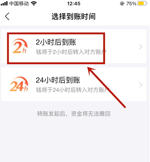 4、选择延迟到账时间。
