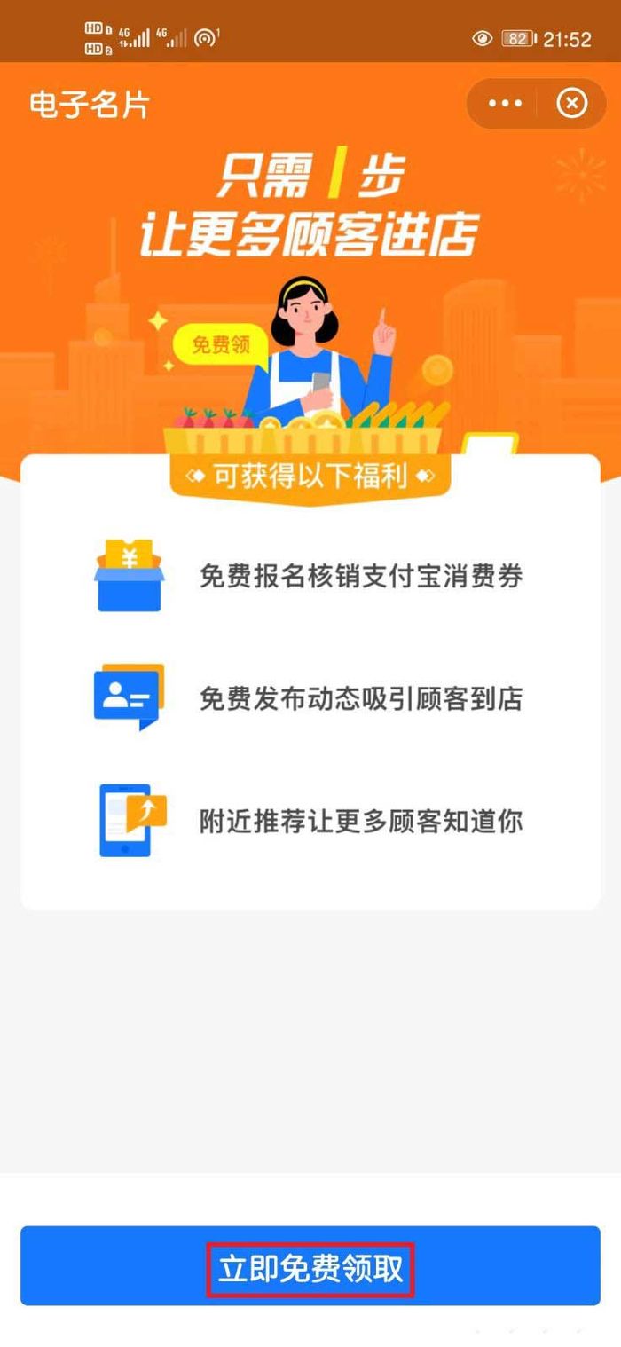 支付宝中商家免费获得店铺电子名片方法【详细介绍】