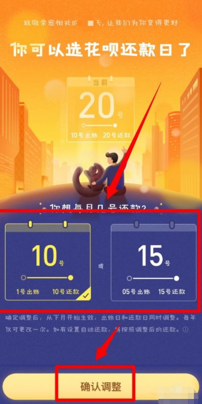 5、最后在切换的界面中选择好讨还款日点击下方 确定调整 就可以完成操作了。