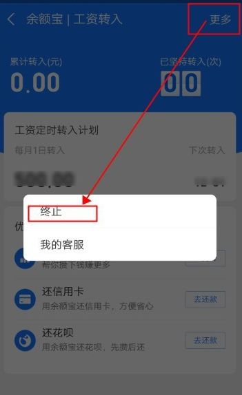 5、如果要取消的话,打开详情页,点击右上角的更多,点击终止即可。